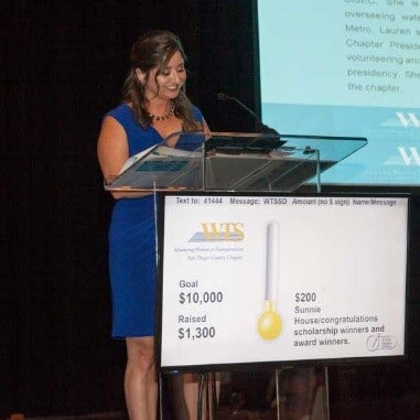 SAN DIEGO, California—At the WTS San Diego County Chapter annual scholarship and awards dinner, Lauren Ferrell was awarded the WTS Member of the Year Award for her outstanding contributions within the transportation field.