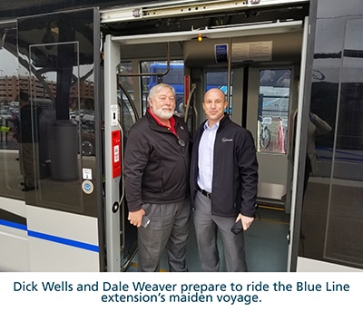 Dick Wells and Dale Weaver attended the maiden voyage and ribbon cutting ceremony for CATS Blue Line Extension prior to the light-rail line opening to the public.
